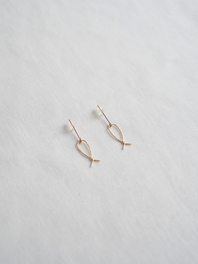 キラッと光るワイヤーを使用しています。 結び目をイメージしたピアス。 下の部分をクルンと一巻きしているので knot(結び目・結ぶもの・絆) ※ピアスは左右ペアでの金額です サイズ/長さ1.8㌢程度 素材 /14kgf
