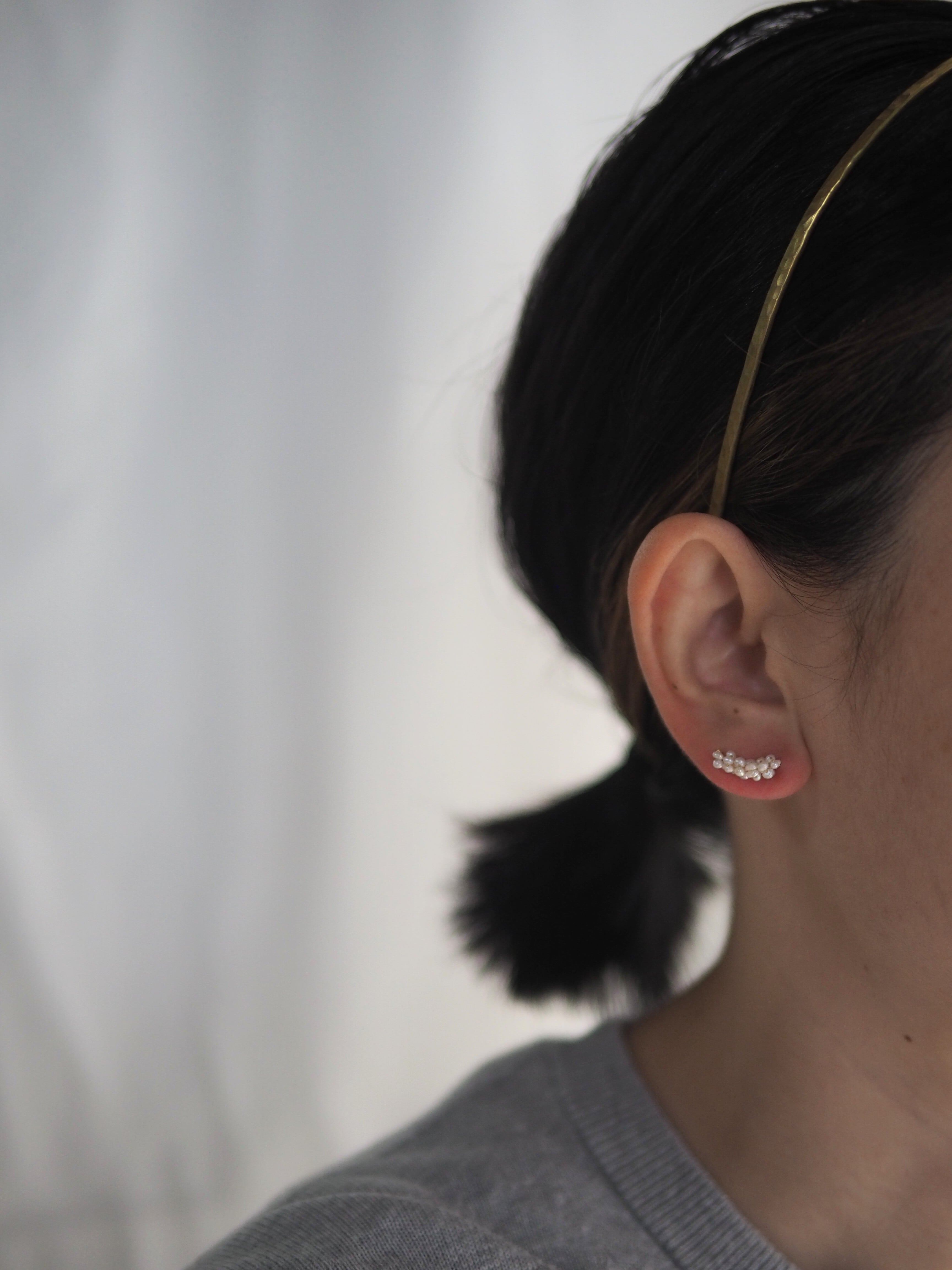 淡水パールをたっぷり使用した耳に添わせて着けるタイプのピアスです。